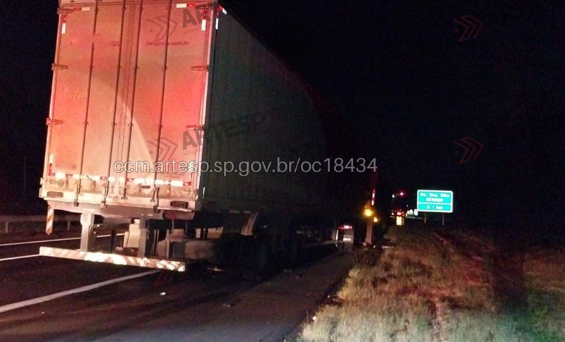 De acordo com o Centro de Controle Multimodal da ARTESP, uma carreta colidiu com outra no sentido sul da pista. A vítima fatal foi retirada do local às 23h40 pela Polícia Técnica.