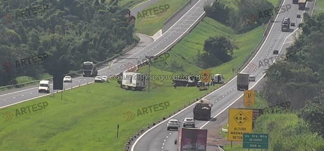 Em nota, a concessionária Arteris ViaPaulista, responsável pelo trecho, informou que foi acionada por volta das 12h para atender a ocorrência de colisão traseira entre caminhões no km 244, no sentido interior–capital.