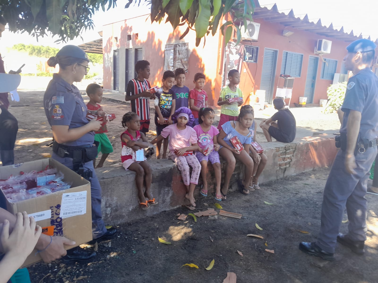A iniciativa levou chocolates a crianças e famílias, com o objetivo de proporcionar um momento de alegria e fortalecer os laços entre a Polícia Militar e a comunidade local.